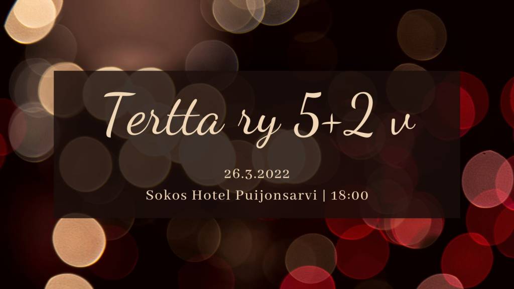 Toivotamme teidät lämpimästi tervetulleiksi juhlistamaan Tertta ry:n seitsenvuotista taipaletta vuosijuhlien merkeissä. Vietämme Tertta ry:n ensimmäistä vuosijuhlaa 26.3.2022 Original Sokos Hotel Puijonsarvessa Kuopiossa.